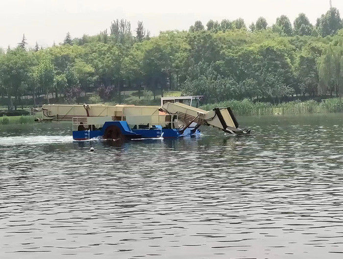 Paddle wheel propulsion 5 km/h barca di pulizia di superficie per il fiume